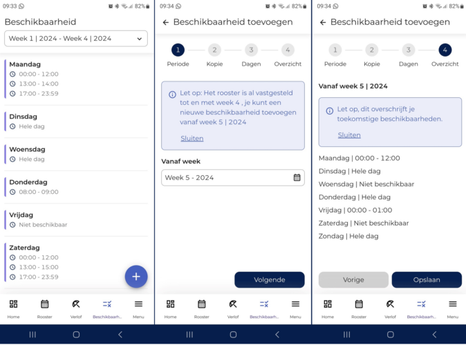 De manier waarop een medewerker in de R&R job app een beschikbaarheid kan aanmaken is vergelijkbaar met de manier waarop een medewerker een schoolrooster kan invoeren: