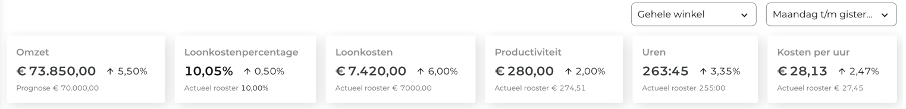 Het beheersen van loonkosten is cruciaal voor elk bedrijf. Met onze software heb je realtime inzicht in de belangrijkste KPI’s, zoals loonkostenpercentage, productiviteit en kosten per uur. Dit betekent dat je direct kunt ingrijpen als de kosten uit de hand dreigen te lopen. Je kunt ook standaardroosters instellen voor een week, twee weken of een maand, zodat je altijd begint met een duidelijke basis. Op die manier kun je efficiënter plannen en je personeelskosten beter beheren.
